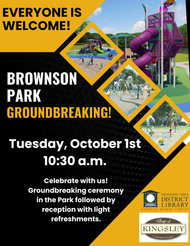Everyone is welcome to the Official Groundbreaking for the all-new Brownson Memorial Park playground, splash pad, fitness loop, and more! A short ceremony in the Park will be followed by a reception with light refreshments in the Village of Kingsley Community Room.